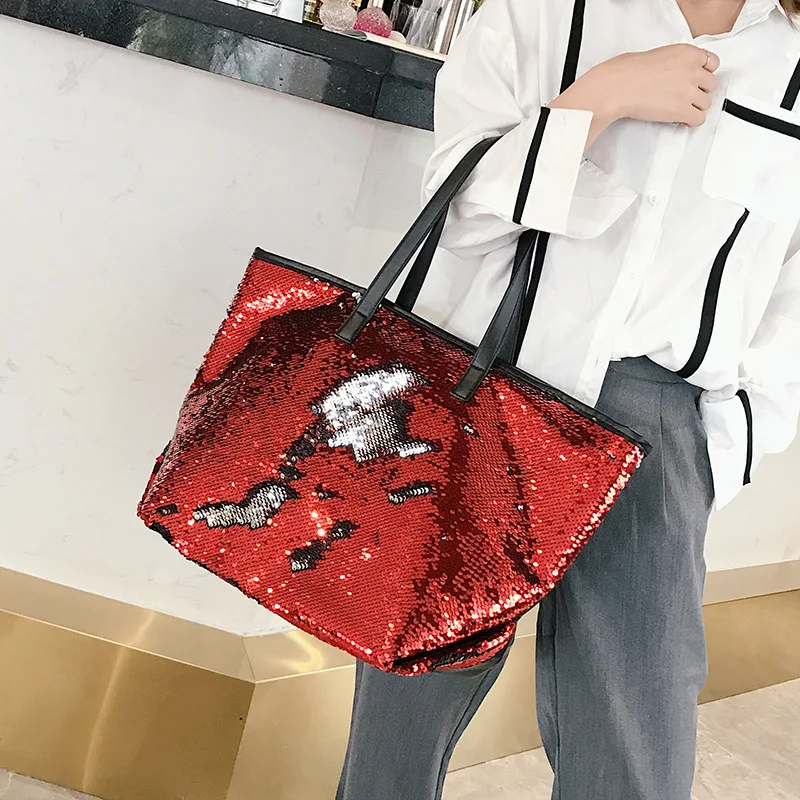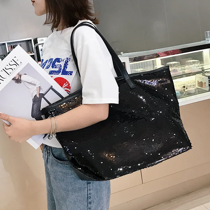 2019 Portable Sequin Handbags Women Fashion Sequins Shopping Bag Large Capacity Glitter Beaded Shoulder Bag Sequin Beach Bag : Check Here